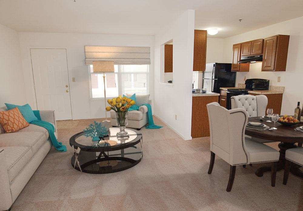 Take a look inside our apartments—a comfortable and convenient setting for members of our senior community. Enjoy paved walking areas, a courtyard with benches for relaxation, and a community clubhouse for resident events!